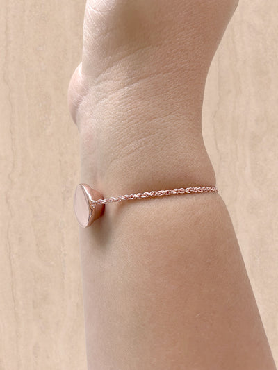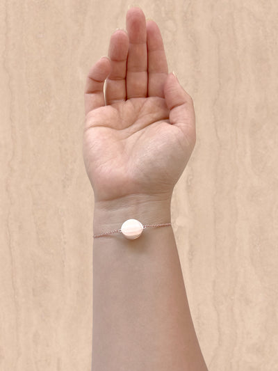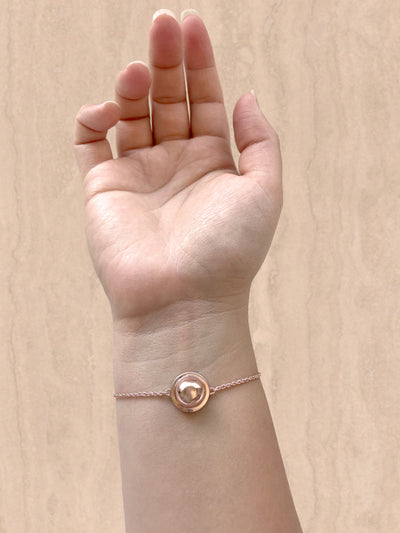 Rotate the bracelet so the dome component is on the interior of your wrist while the slider bead is on the outside of your wrist.